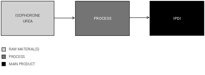 This report presents the economics of Isophorone Diisocyanate (IPDI) production from isophorone and urea. The process examined is a typical non-phosgene technology. In this process, isophorone diamine (IPDA) is initially obtained from isophorone. Then, IPDA reacts with urea and butanol generating a carbamate intermediate. Then, the carbamate is thermally cracked producing IPDI.